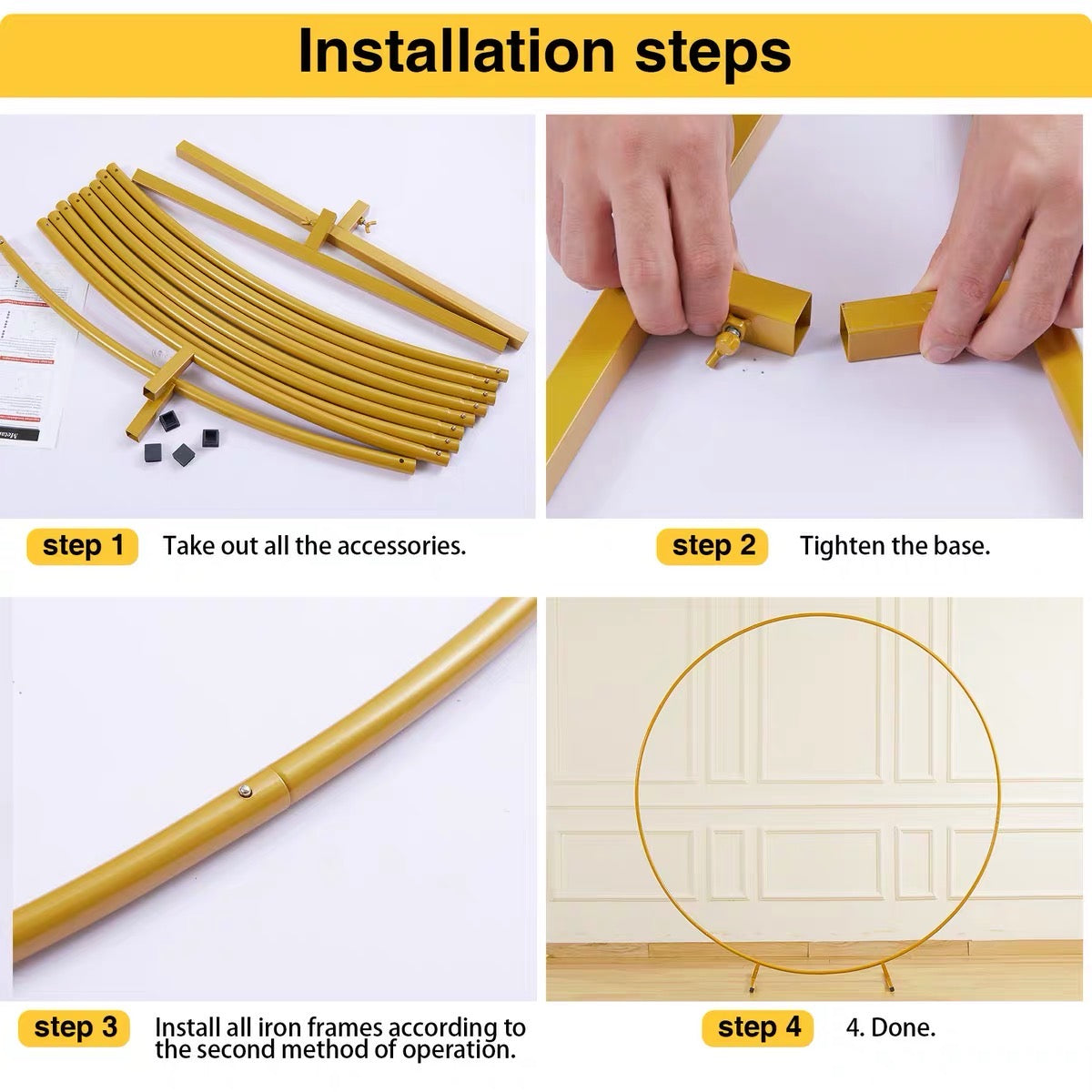 Create unforgettable memories with this elegant metal round wedding arch backdrop stand. Perfect for weddings, parties, and photography, this gold circle frame provides a stunning base for flowers, balloons, fabric drapes, or lights. Its minimalist yet elegant design makes it an ideal decoration for any celebration.